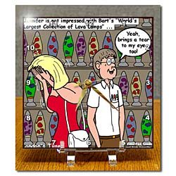 Nerd Dating and Lava Lamps Desk Clock is new, handcrafted utilizing unique process resulting in a stunning high gloss ceramic-like finish. Measures 6" x 6", comes with transparent acrylic stand. Single AA battery is not included.